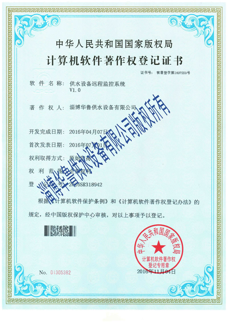 供水遠程監控系統證書(shū)