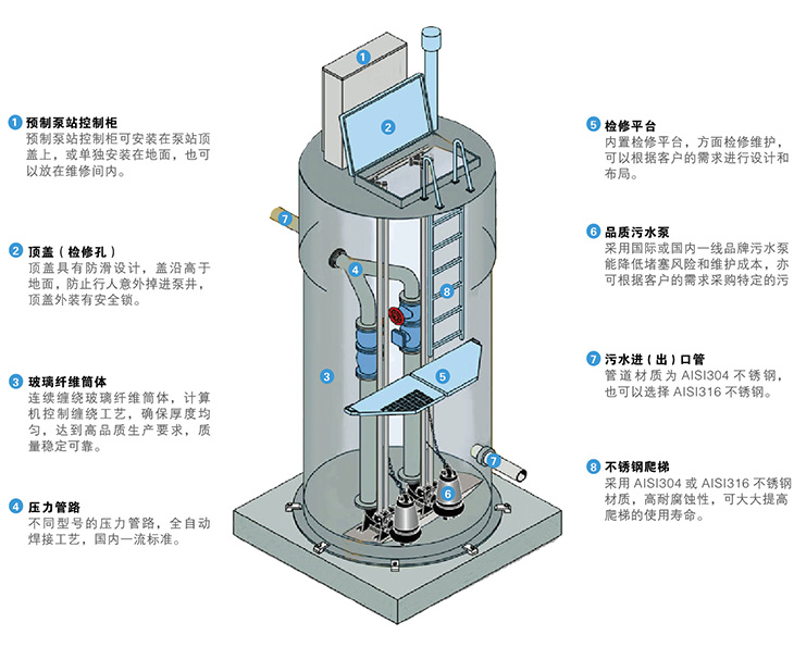 華魯一體化預制泵站是一種集潛水泵泵站設備、除污格柵設備、控制系統及遠程監控系統集成的一體化的產(chǎn)品。其特點(diǎn)具有機動(dòng)靈活,占地面積小,泵站建設周期極短,清渣方便,使用壽命長(cháng),安裝極其簡(jiǎn)便等特點(diǎn)。目前在國內市政行業(yè)成為一個(gè)新的泵站建設發(fā)展趨勢。